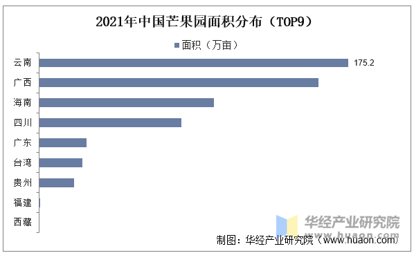 中国芒果产区次要分布正在云南、广西、海南、四川、、贵州等地,此中,云南、海南以及四川产区的芒果园面积较着跨越其他产区。2021年云南、广西、海南以及四川产区芒果园面积别离为175。2万亩、158。4万亩、99。3万亩、80。7万亩,正在全国芒果园面积中所占的比沉顺次为29。87%、27。01%、16。93%、13。76%。
