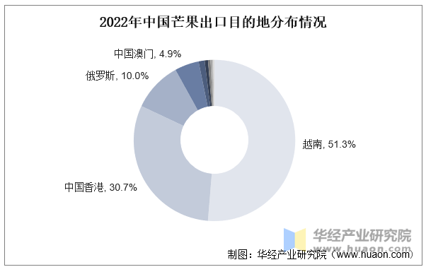 本文节选自华经财产研究院发布的《2023年中国芒果财产现状及成长趋向阐发,鼎力推进芒果财产延链条、市场畅通拓渠道「图」》,如需获取全文内容,可进入华经谍报网搜刮查看。我国芒果次要出口至越南、中国、俄罗斯、中国澳门和新加坡等地,此中出口至越南和中国的数量跨越了1万吨,别离为1。93万吨和1。16万吨,占比别离为51。3%和30。7%。