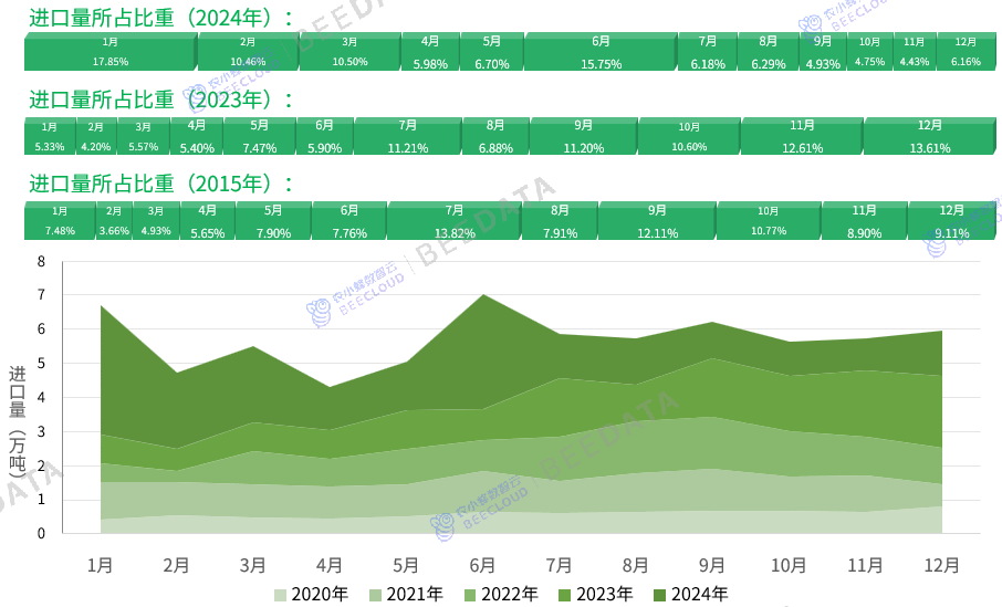 2024年,中国咖啡进口次要集中正在1月、2月、3月、6月,这4个月进口的咖啡进口量正在全年咖啡进口量中所占的比沉均正在10%以上。